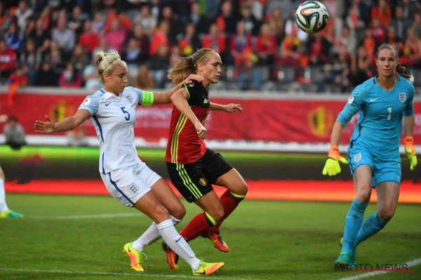 Nikita Parris et Karen Cairney (65e, 85e) ont inscrit les deux buts de la rencontre (0-2) qui avait lieu à Louvain devant un public de 7000 personnes, record absolu pour les Flames. Une pression inhabituelle qui a peut-être paralysé la Belgique, qui a subi sa seule défaite de la campagne.